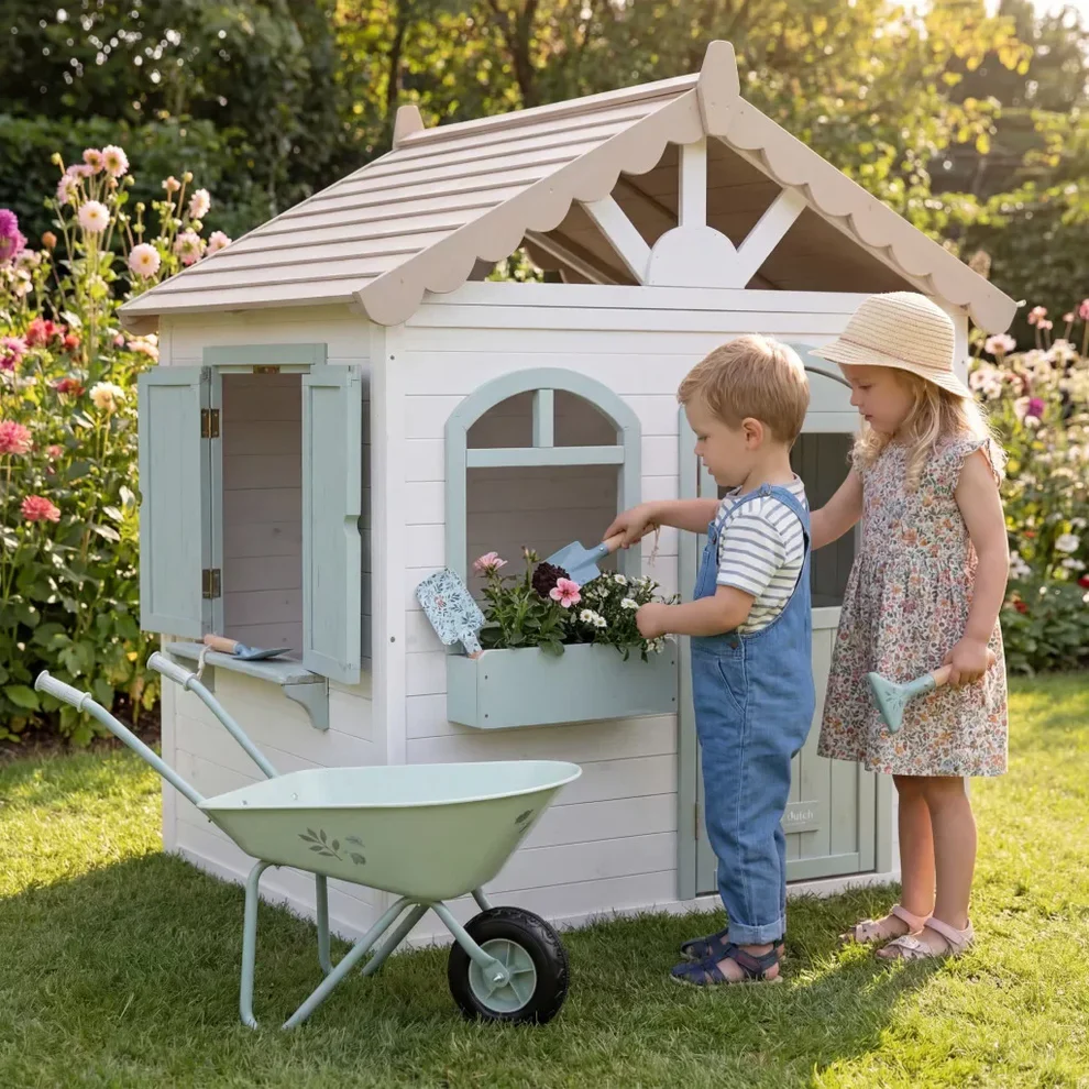 Vrtna hišica Little Dutch nudi malčkom varen in prijeten prostor za ustvarjanje, raziskovanje in domišljijsko igro. Ta izdelek združuje varnost, trajnost in estetski videz v nežnih, naravnih tonih. Stabilna zasnova omogoča brezskrbno igro, medtem ko hišica postane popolno zatočišče za male raziskovalce.